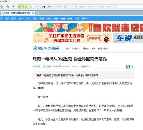 當前位置:首頁 ? 行業動態 » 珠海一電梯從9樓墜落是回南天惹的禍?愛佩恒溫恒濕箱能為你解決