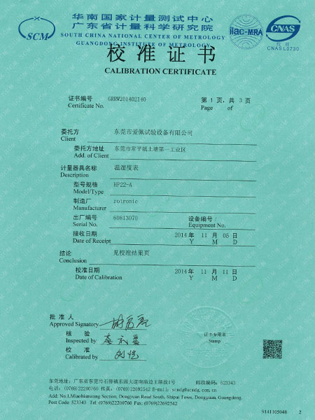 檢測儀表校準證書
