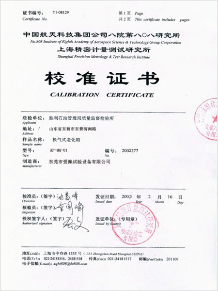 老化箱校準證書